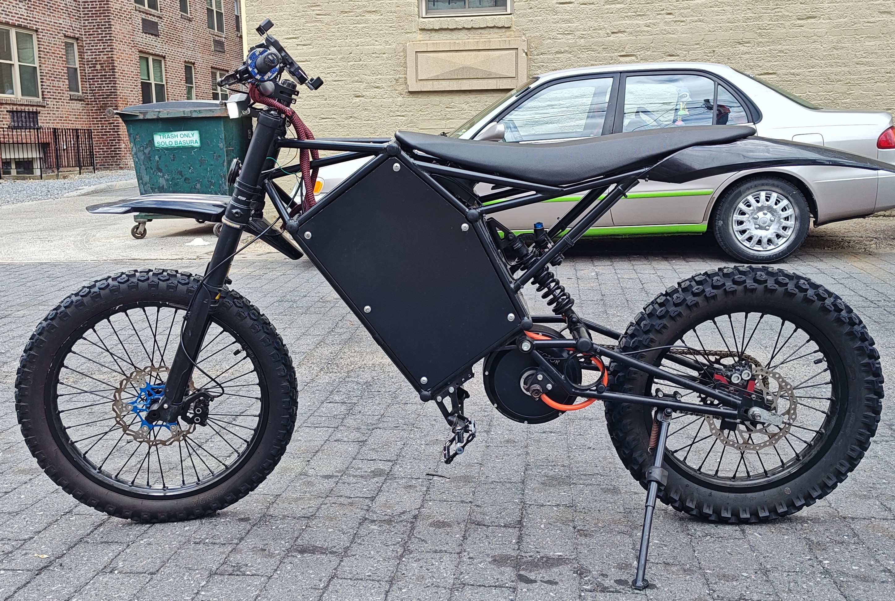 If I were to do this project again, I would air-cool the controller and mount it externally to preserve room in the battery compartment for cleaner wiring. I would also make it less powerful and lighter. While this bike is incredibly fun to ride, you never use all 32 kW of power, and when you do, it’s terrifying. And while the bike weighed only 160 lbs, it would have been more nimble if it were lighter. Finally, I would have chosen a different motor, as the one I chose did not have enough torque at low RPMs and was therefore not efficient for low-speed hill climbs and other routine off-road maneuvers.